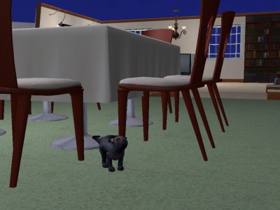 さて、マックスはダイニングの隅に居場所を作ってもらって、この通り。